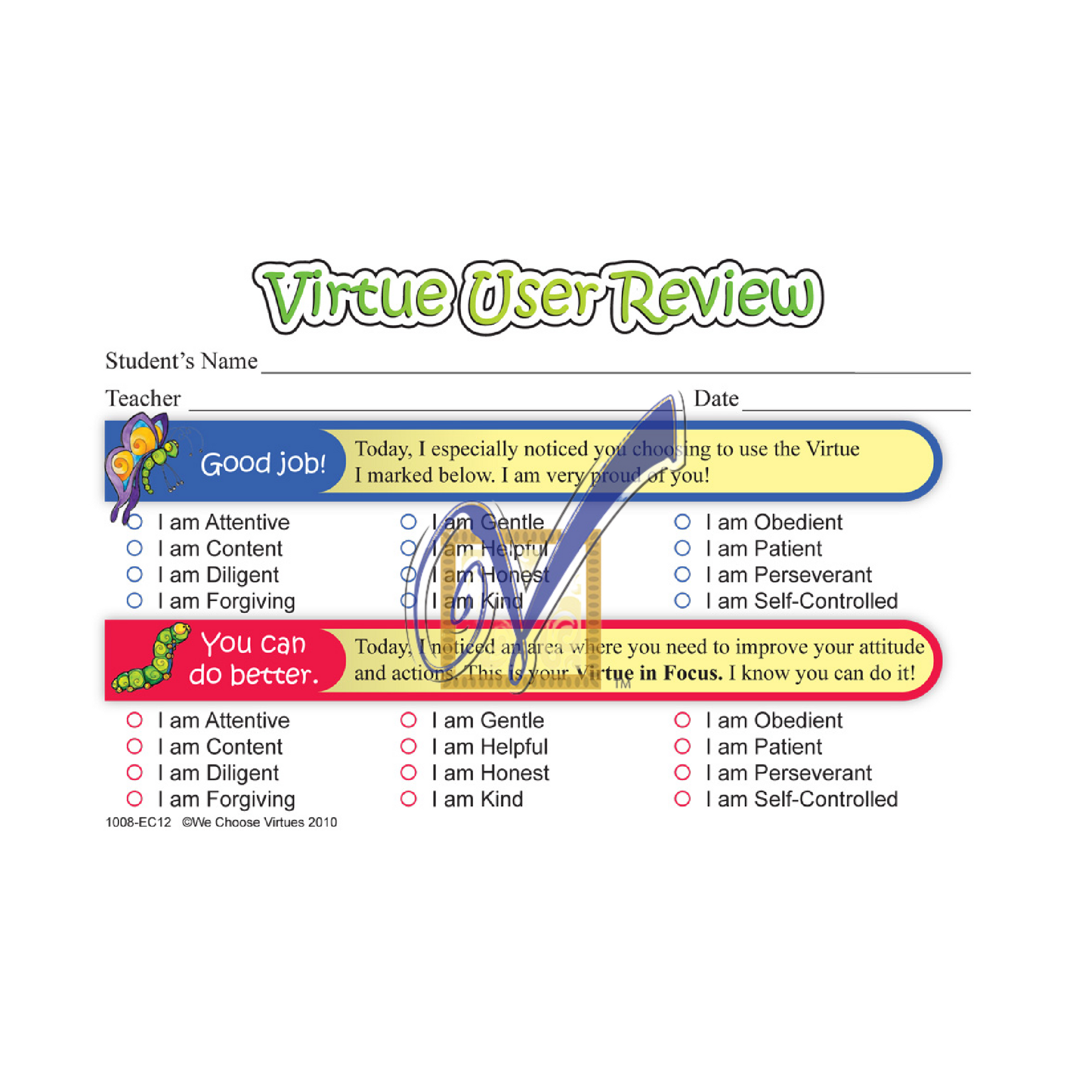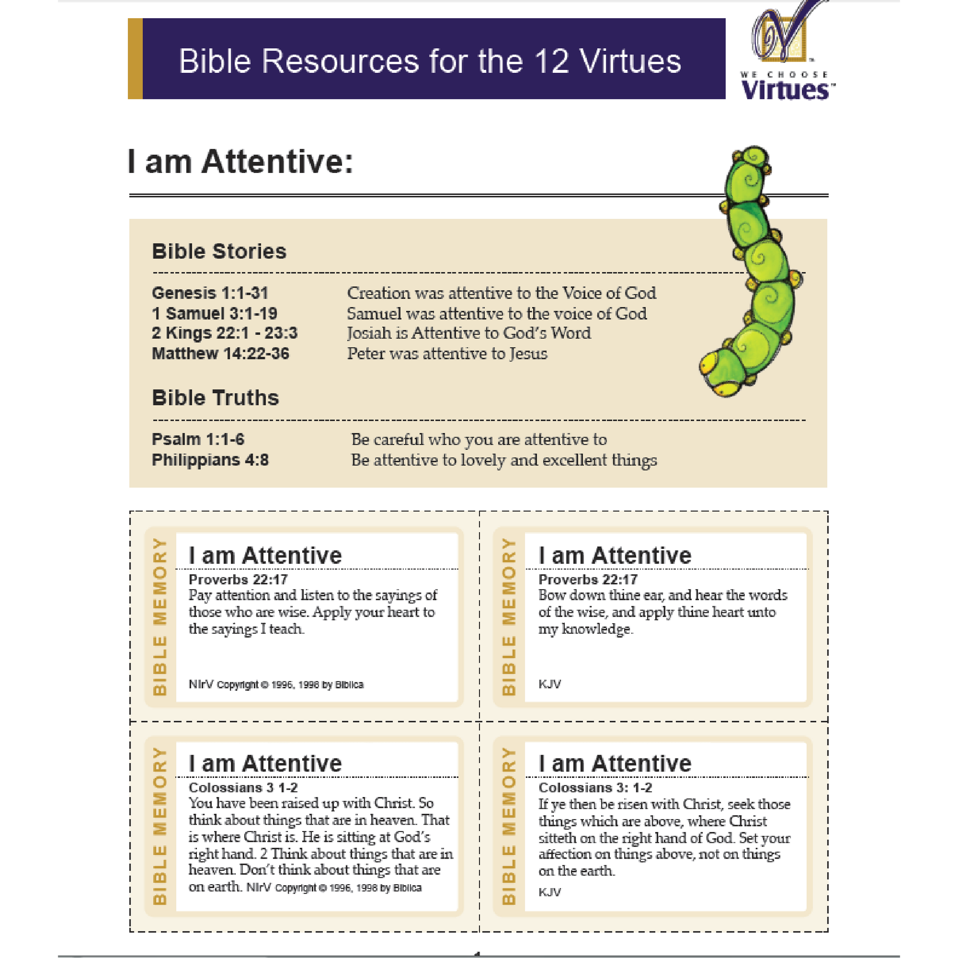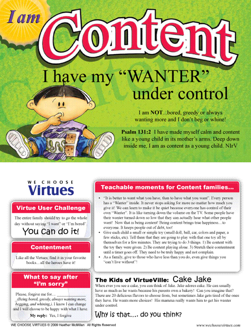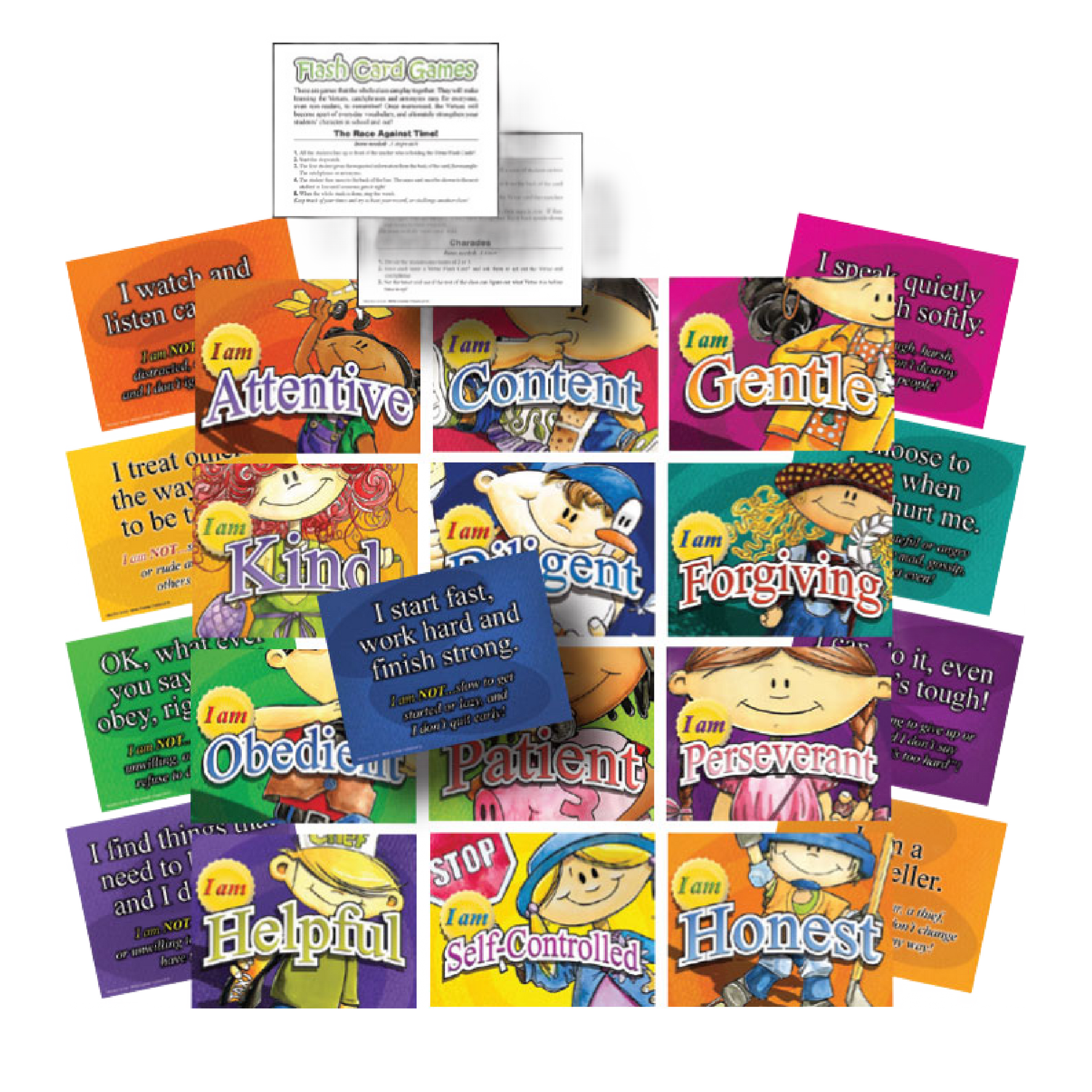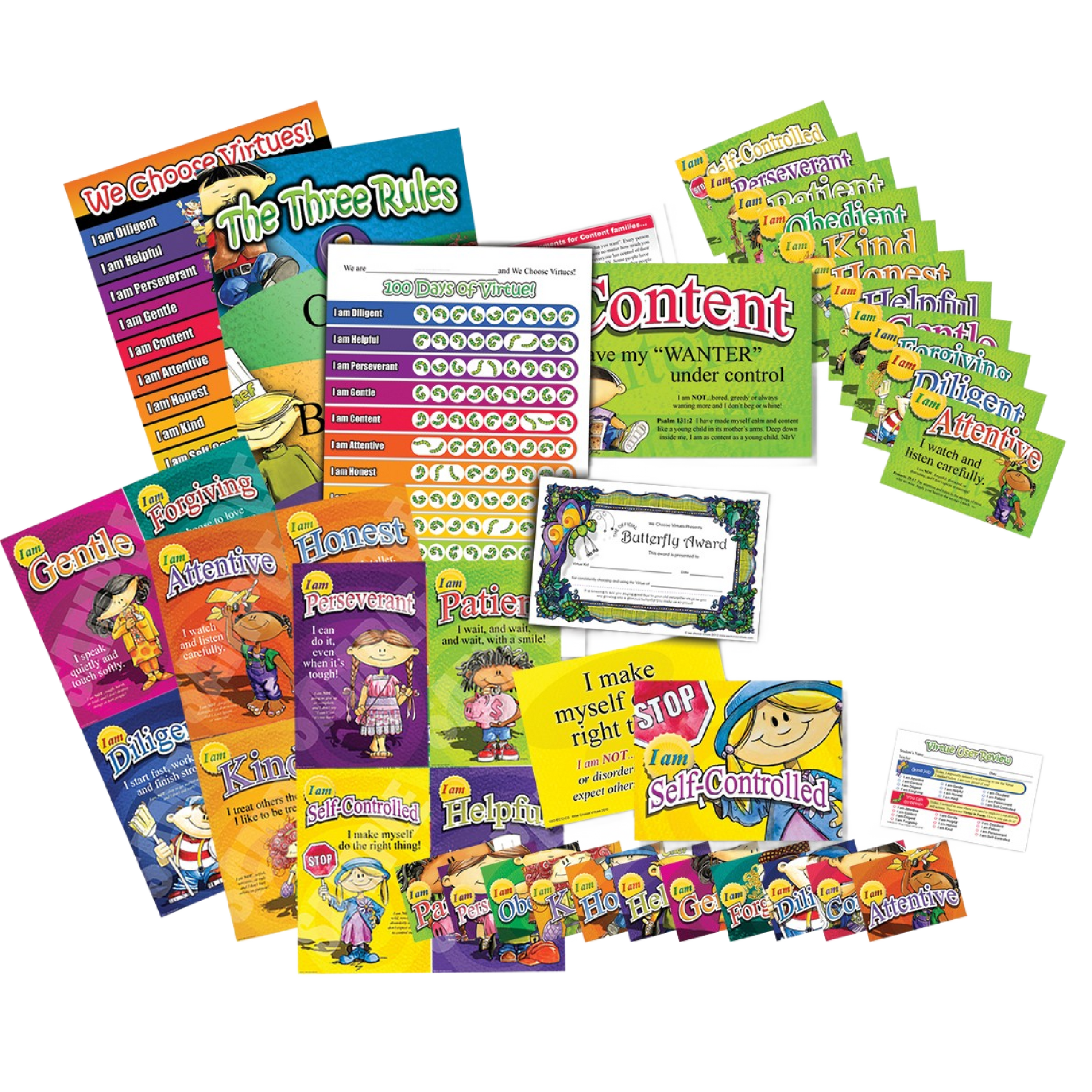 - Reinforce each Virtue using the colorful Posters, Awards, Flash Cards, and more.