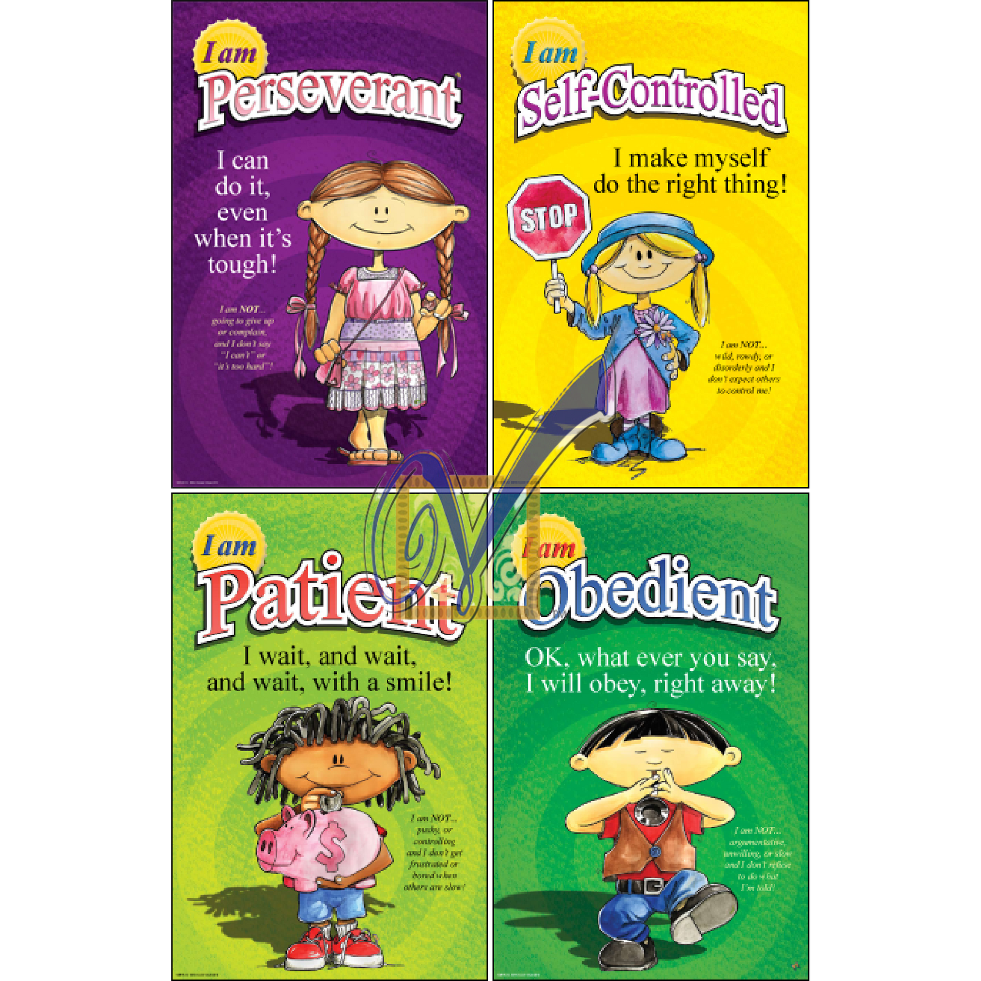 The Kids of VirtueVille Mini Posters. Keep the inspiration and motivation in front of your student's eyes at all times with these 12 bright and colorful posters featuring the multi-ethnic Kids of VirtueVille, our Virtues, their Catchphrases and Antonyms.